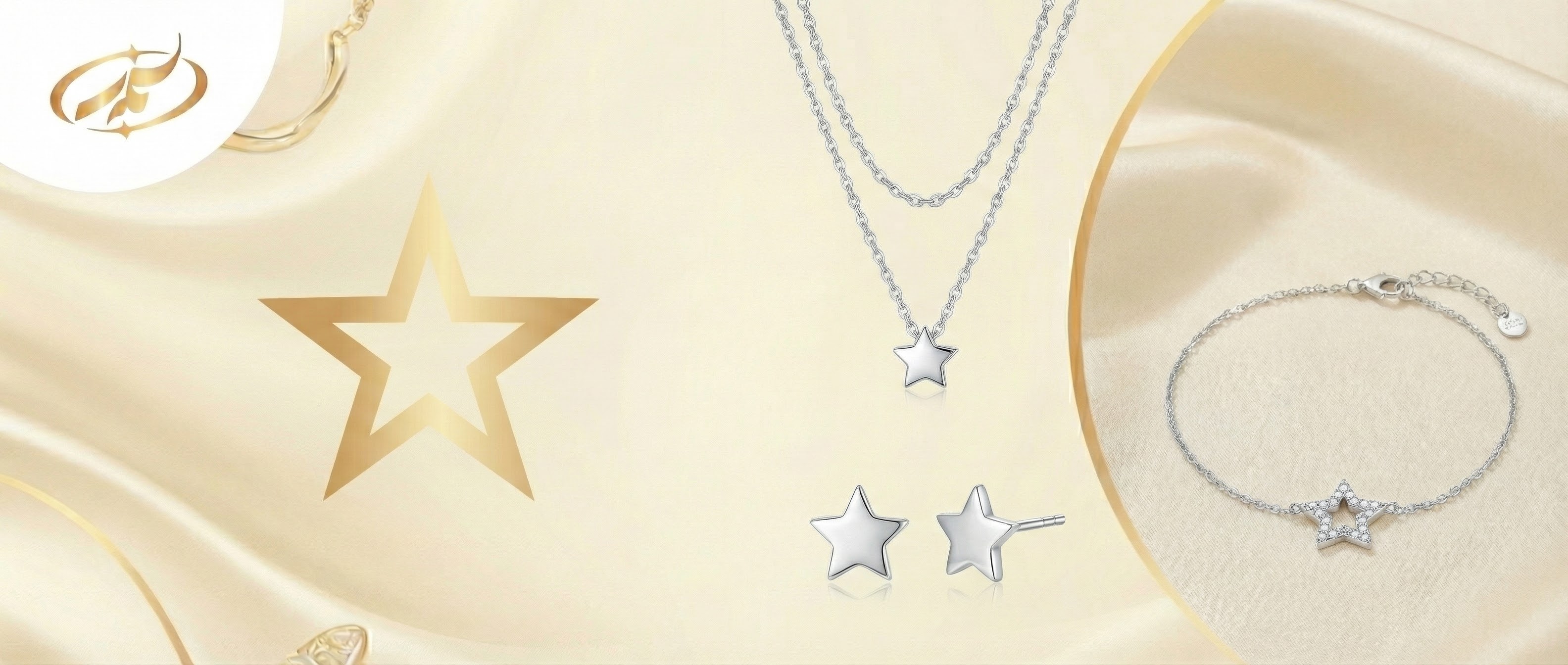 النجمة في المجوهرات غالبًا ما ترمز إلى الأمل، الأحلام، والهداية – كأنها تذكير داخلي بأن تتبعي "نجمتك الخاصة" في الحياة.